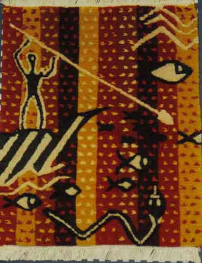 Past work may still be available for purchase. Please contact John for details.Large Carpets Turtle Hunt Sunset Fishing Bush Pools Lady in Black Dress Dreamtime Dreamtime Revisited Burial Ground Bush Pools and Lakes Day Fishing Dingos Small CarpetsAll approx 26 cm x 30 cm Stingray Rainbow Tree Pathways Spear Fishing Fossil Tree Four Sisters Day Walk Spirit of Place